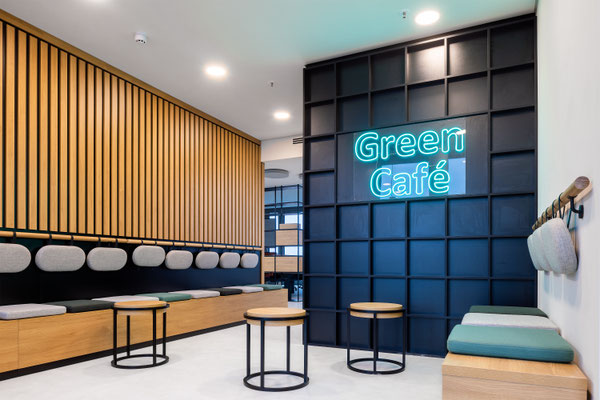 Im Winter 2022/23 ließ der Energieversorger VATTENFALL verschiedene Office- und Aufenthaltsbereiche seiner Berliner Konzernzentrale neu gestalten. Die Ausführung sämtlicher Polsterarbeiten lag bei uns und umfasste die Herstellung einer dreistelligen Stückzahl an Rückenpolstern, Sitzpolstern, Akustikpaneelen und Bankauflagen.